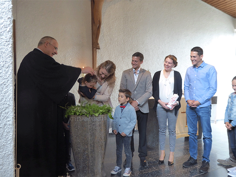 Taufen finden in der Evangelischen Kirchengemeinde Klettgau übers Jahr an jedem Sonntag statt, eine besondere Vorleistung ist dafür nicht erforderlich. Die Anmeldung geschieht übers Evangelische Pfarramt oder direkt telefonisch bei Pfr. Dr. Kaiser. Mit der Taufe wird das Kind in die Gemeinschaft der weltweiten Kirche aufgenommen. Hier die Taufe von Emily Gamp aus Bühl mit Eltern und Paten am 13. Mai 2018 in der Matthäuskirche! Die Kirchengemeinde wünscht Familie Gamp alles Gute und Gottes Segen!