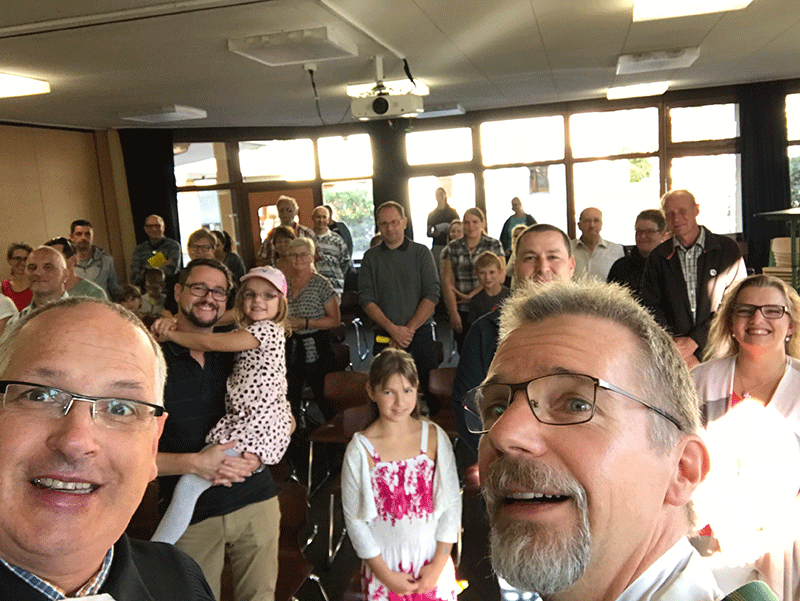 Am Sonntag, den 11. März 2018, 10.00 Uhr sprang Pfr. Dr. Kaiser für den ursprünglich angekündigten, aber leider an Grippe erkrankten Pfarrer i. R. Kurt Josef Beardi ein. Deshalb machte er im Anschluss an den Gottesdienst einen Hausbesuch bei dem Erkrankten und überbrachte ihm als Dankeschön des Kirchengemeinderats der Evangelischen Kirchengemeinde Klettgau ein Buchgeschenk. Pfarrer Beardi hat nach seinem Eintritt in den Ruhestand vor 15 Jahren pflichtbewusst und zuverlässig immer wieder Predigt- und Kasualvertretungsdienste übernommen. Seinen kommenden 80. Geburtstag nahm er zum Anlass, um nun endgültig in den Ruhestand zu treten. Er freute sich über das Geschenk, dankte dem Kirchengemeinderat, stand noch für ein Selfie zur Verfügung und verabschiedete sich von Pfr. Kaiser in seiner typisch humorvollen, rheinländisch-fröhlichen Art mit einem Zitat von Heinrich Böll: „Ende einer Dienstfahrt!"