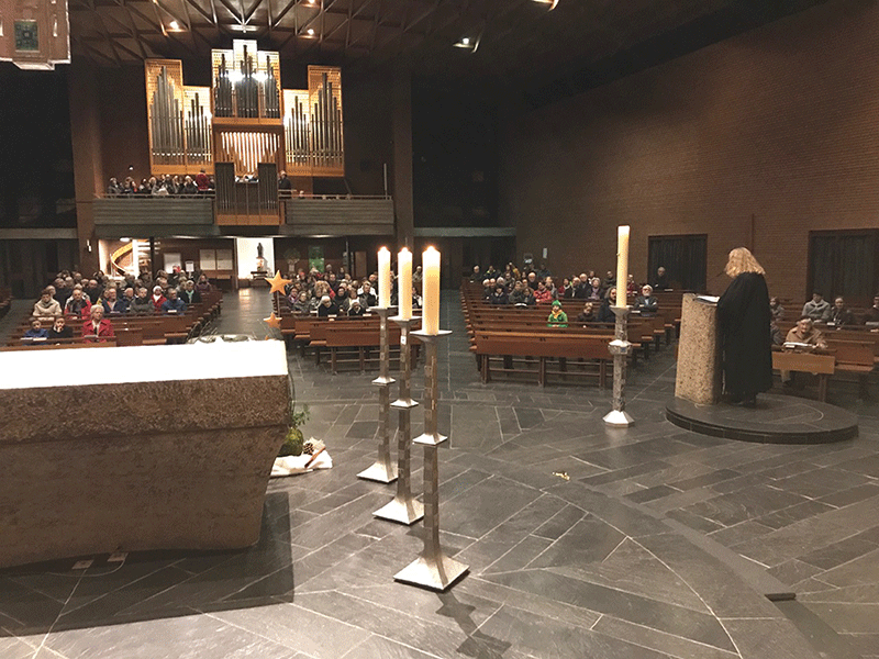 Die Weihnachtsgottesdienste fanden wieder beide in Erzingen statt. Sie waren wie im letzten Jahr sehr gut besucht. Um 20.00 Uhr wurde ein besinnlicher Gottesdienst gefeiert. Es spielten Gabriel Kaiser (Geige und Orgel), Gloria Kaiser (Geige), Balthasar Kaiser (Geige), Salome Kaiser (Geige) und Pfarrer Dr. Kaiser (Gitarre) Lieder zur Weihnacht. Die liturgische Leitung und die Predigt des Gottesdienstes um 20.00 Uhr hatte Pfarrerin Andrea Kaiser, Kirchengemeinderatsvorsitzende Brigitte Rogge las das Weihnachtsevangelium und selbst verfasste Texte von Pfarrerin Kaiser zur Weihnachtsbotschaft.